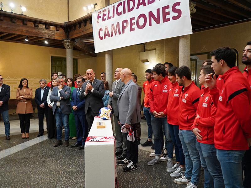 Con una pancarta en la que se podía leer, “Felicidades campeones”, gran parte de la corporación provincial en funciones, encabezada por el presidente, Miguel Ángel de Vicente, y por el diputado de Deportes, Óscar Moral, recibía a jugadores y cuerpo técnico de la primera plantilla, así como a los dirigentes del club, con Julián Mateo, su presidente, y el alcalde en funciones de la localidad, Juan José Maroto, al frente, para felicitarles por un éxito que, como se encargaba de señalar De Vicente, “celebra toda la provincia”.